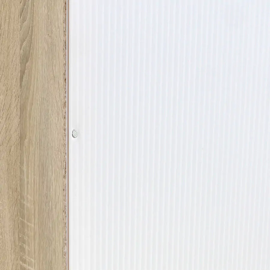 Policová skříň z laminované dřevotřísky v barevném provedení dub obsahuje 3 police a 2 velké zásuvky s kovovými pojezdy.