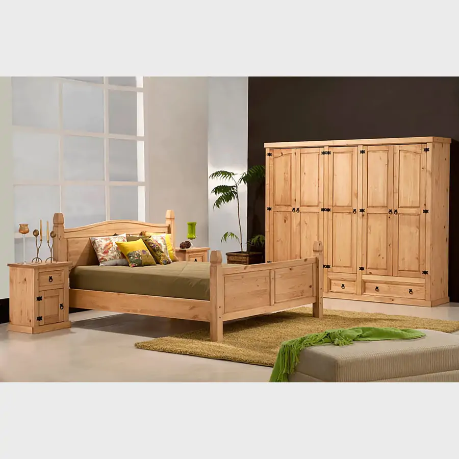 Šatní skříň z masivní borovice je voskovaná, v medovém odstínu. Prostor je dělený v poměru 2:1:2. V obou širších částech je šatní tyč a police na klobouky, střední užší část obsahuje 3 variabilní police. Ve spodní části jsou 2 velké a 1 malá zásuvka.