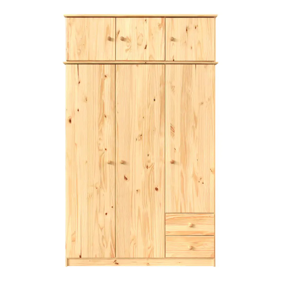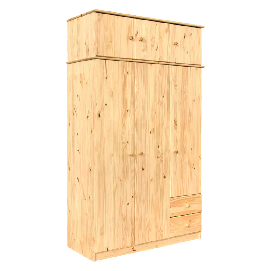 Šatní skříň je vyrobena ze smrkového masivu v lakovaném provedení. Korpus skříně je z lamina.