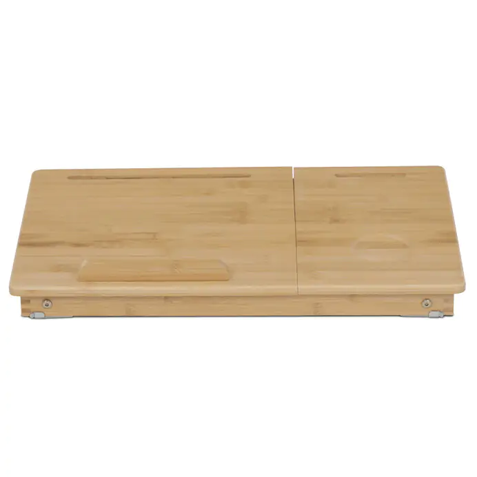 Skládací stolek DR-B069 NAT na notebook z masivního bambusu v přírodním odstínu nabízí praktické řešení pro práci i odpočinek.