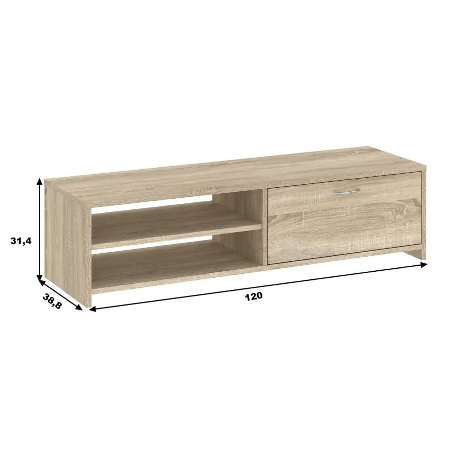 Televizní stolek CARINO s výklopnými dvířky je vyroben z kvalitní LTD desky nenáročné na údržbu, v barevném provedení dub sonoma. Dodáváme v demontovaném stavu.