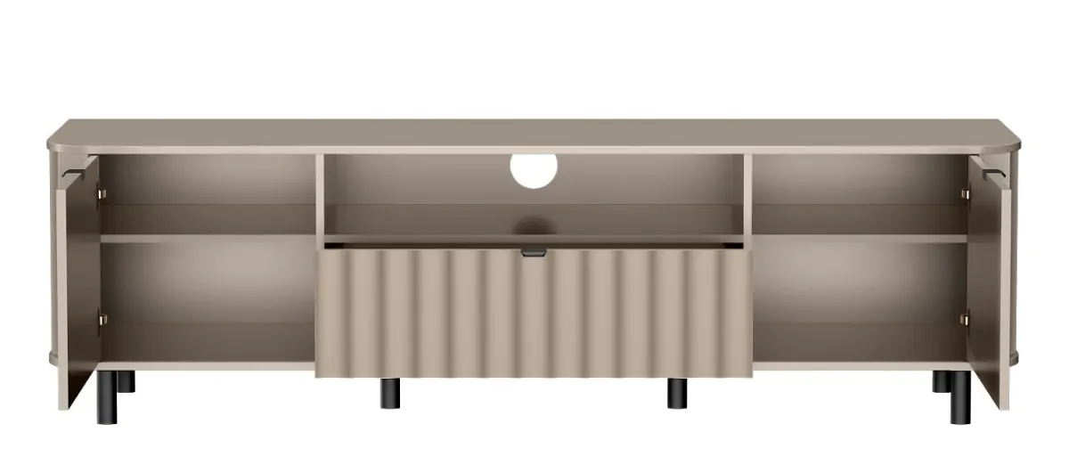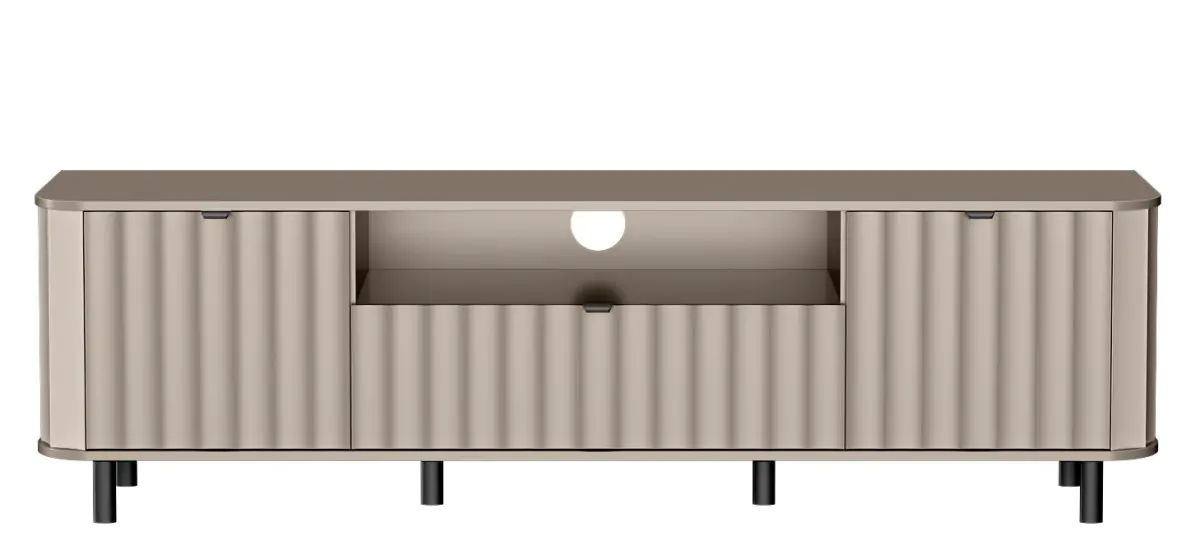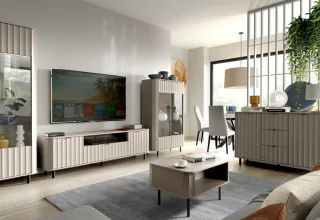 Kolekce JOLY nábytku do obývacího pokoje, která spojuje eleganci a funkčnost. Jejím charakteristickým prvkem jsou frézované, fóliované čelní desky z MDF, které dodávají interiéru jedinečný charakter. Díky netradiční barvě se hodí do různých stylů zařízení, od moderních po minimalistické.