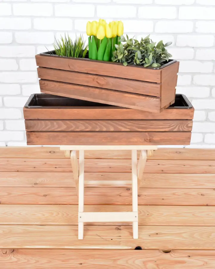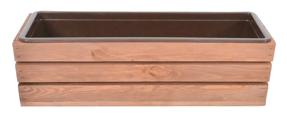 Součástí truhlíku je praktický hnědý plastový květináč, do kterého můžete přímo zasadit květiny – odpadá tak nutnost shánět vhodnou vložku zvlášť.