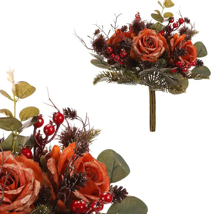 Elegantní kytice UKB202 TER z umělých větviček a květin přináší sváteční atmosféru v té nejkrásnější podobě. Kombinace nádherných květů růží, jehličí, bobulí, šišek a lístků vytváří bohatou a harmonickou...