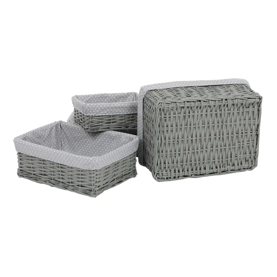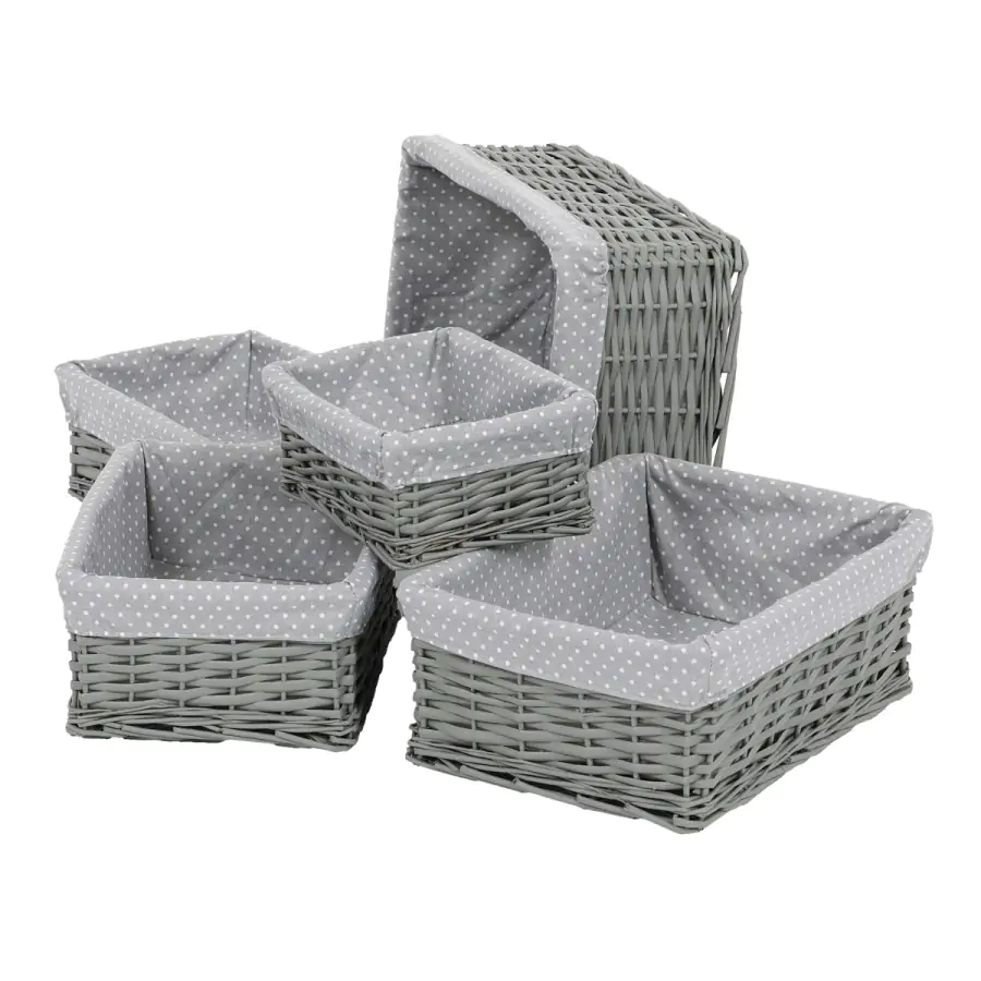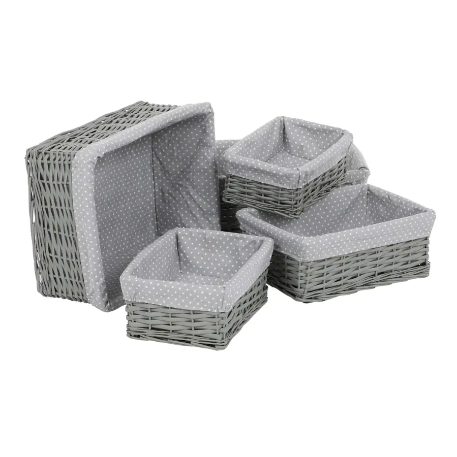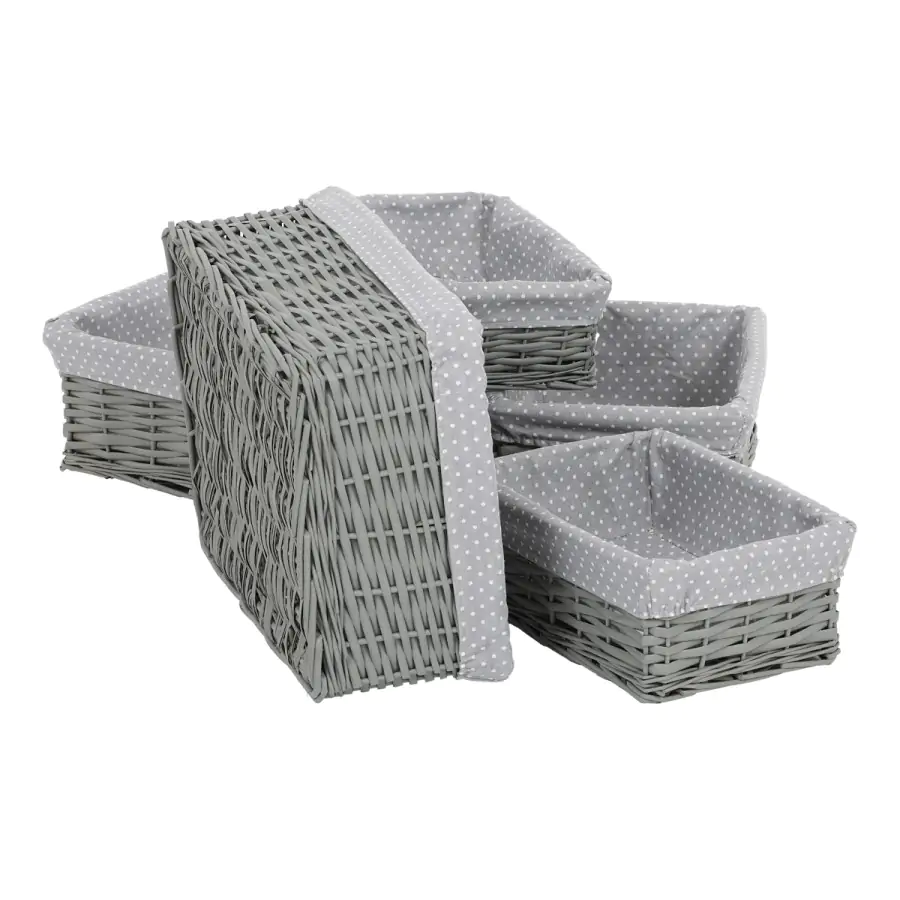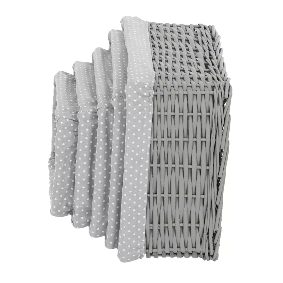 Proutěný košík PRN2013 GREY vystlaný látkou je výborným pomocníkem pro milovníky přírodních materiálů, kteří se snaží udržovat pořádek v regálech a na poličkách.