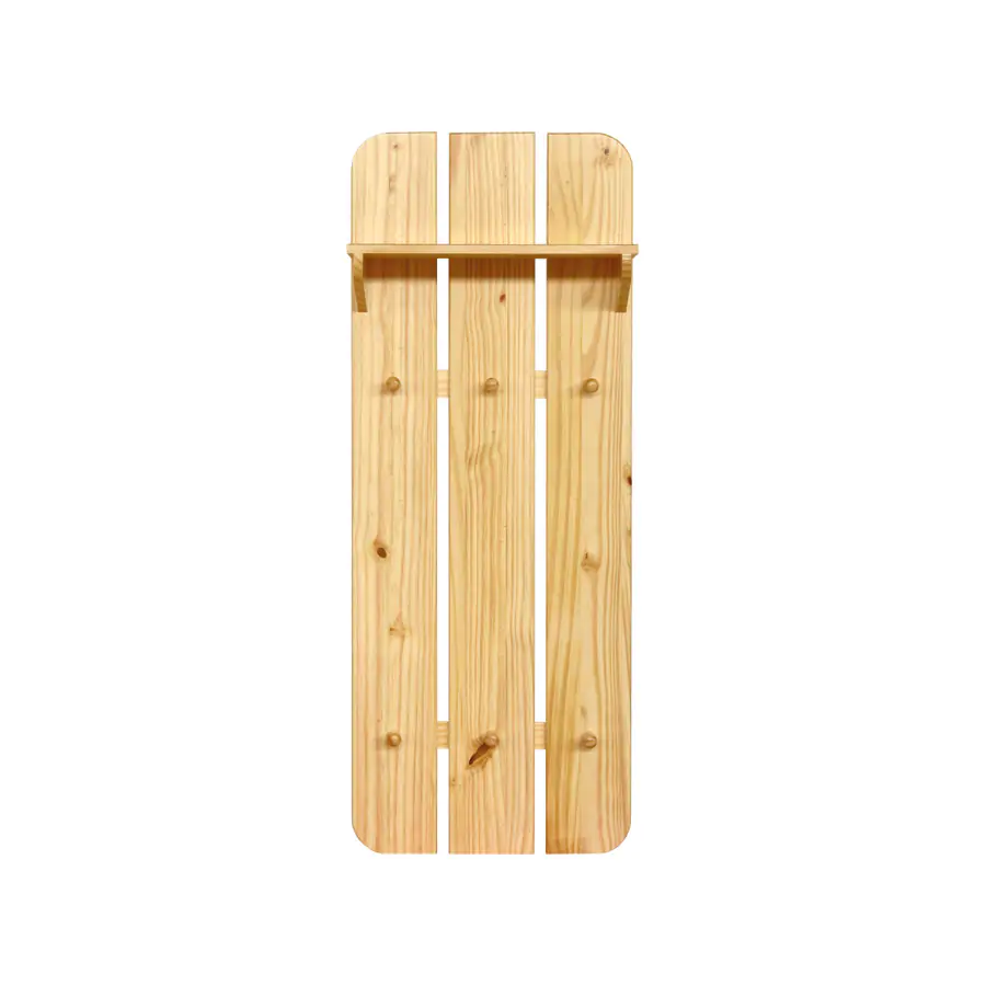 Nástěnný věšák je vyroben z masivního smrkového dřeva v lakovaném provedení v přírodní barvě. Na věšákové stěně je k dispozici šest háčků. Nad háčky najdeme praktickou polici k odložení doplňků k oblečení.