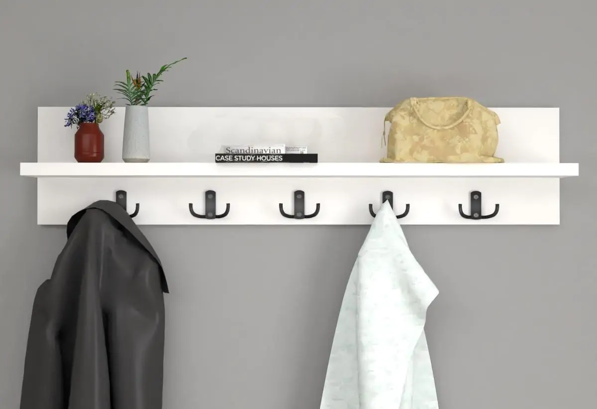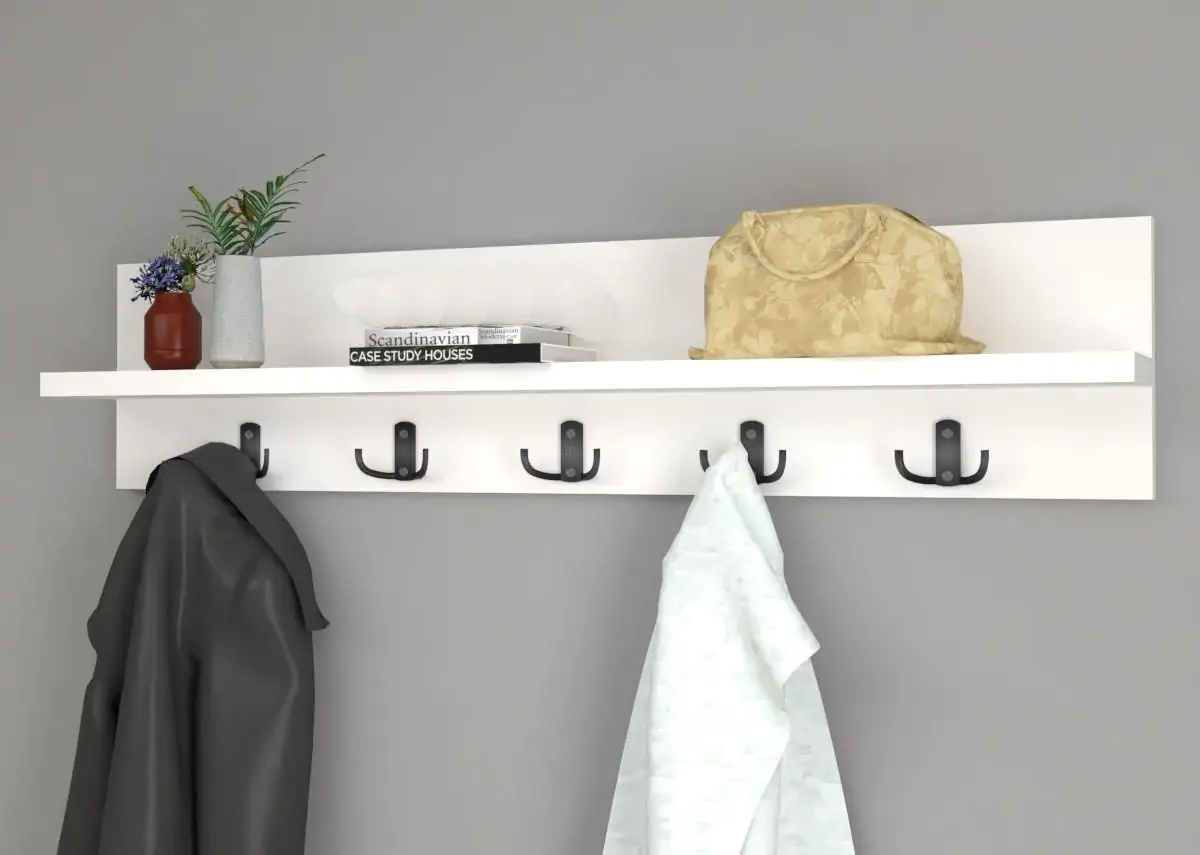 Věšák s policí FOLET je vyroben z kvalitní desky LTD v matné bílé barvě.