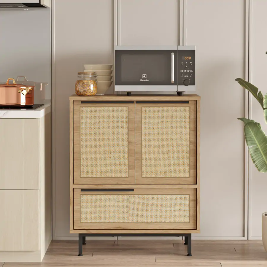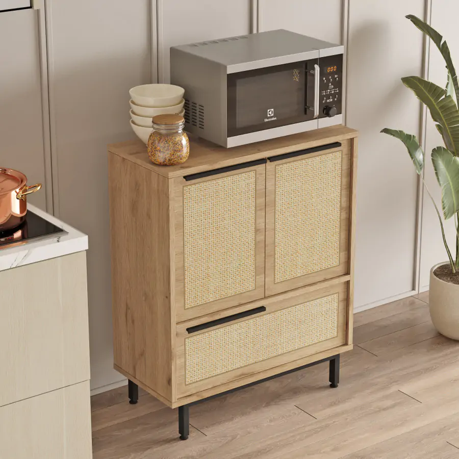 Spojuje funkčnost a moderní design. Díky třem plným dvířkům poskytuje dostatek úložného prostoru pro organizaci předmětů, jako jsou knihy, dokumenty, dekorace nebo další nezbytnosti. Kompaktní rozměry a víceúčelový vzhled umožňují snadné umístění do jakéhokoli interiéru.
