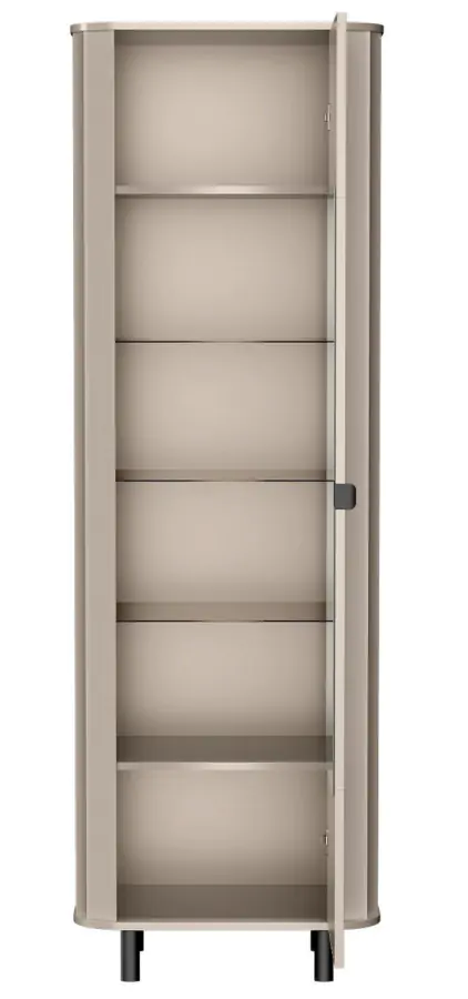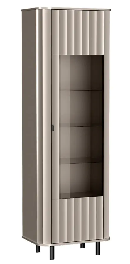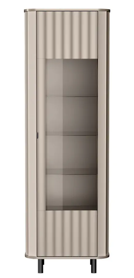 Vitrínu podepírají štíhlé kovové ocelové nožky práškově lakované o výšce 12 cm, které zajišťují nejen stabilitu, ale i lehkost vzhledu a snadnější úklid pod nábytkem. Jsou to kusy nábytku, které se nestylizují násilně, ale spíše podtrhují charakter prostoru.