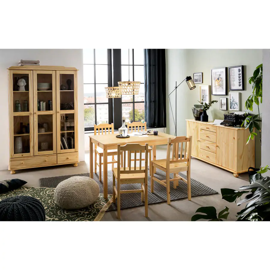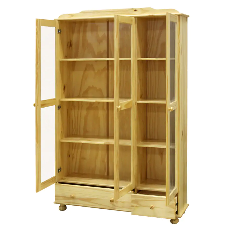 Stylová třídveřová vitrína je vyrobena z lakované masivní borovice. Tato vitrína má dělený prostor v poměru 2:1.