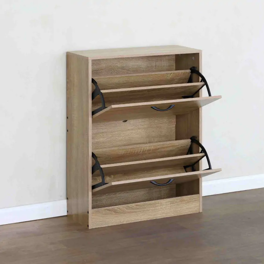 Zjednodušte si každodenní odkládání obuvi s botníkem BOTNIX. Dva výklopné šuplíky s praktickým vnitřním dělením nabízí přehledné a úsporné řešení pro uložení bot, díky čemuž zůstane vaše předsíň čistá a uspořádaná. Díky odstínu dub působí svěže a elegantně, a bez problémů zapadne do moderních interiérů.
