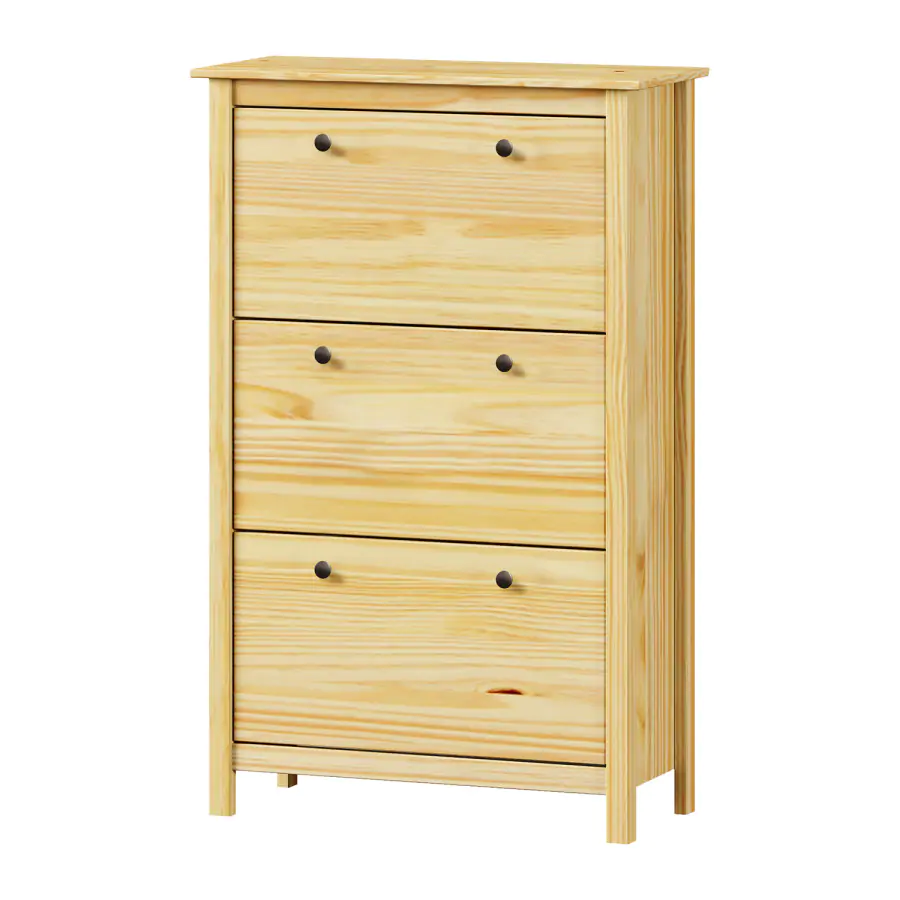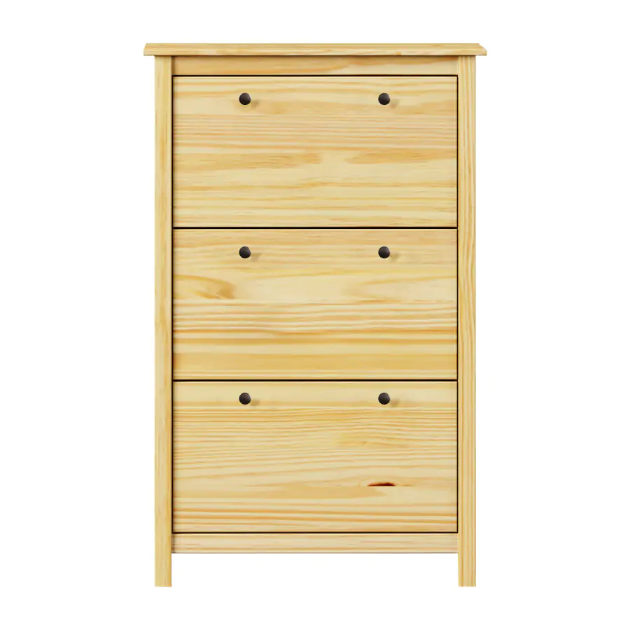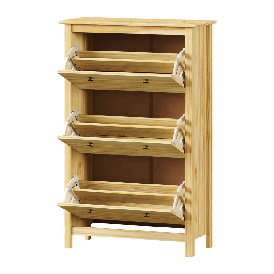 Povrchová úprava nechává vyniknout kresbě dřeva a zároveň chrání materiál před každodenním opotřebením. Botník má tři dvouřadé výklopy, kam bez problémů uložíte obuv celé rodiny. Horní desku můžete využít jako odkládací plochu na tašky, klíče nebo dekorace.