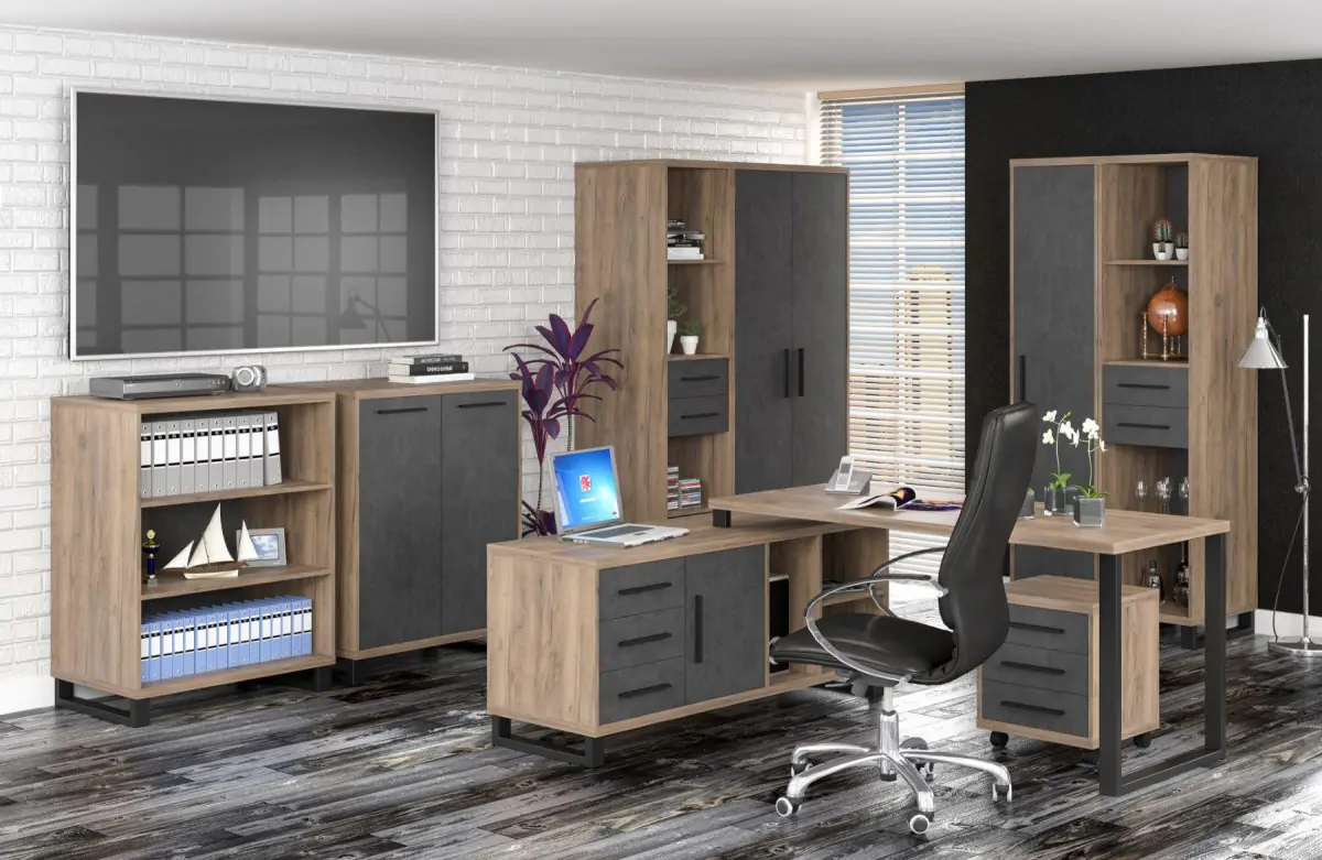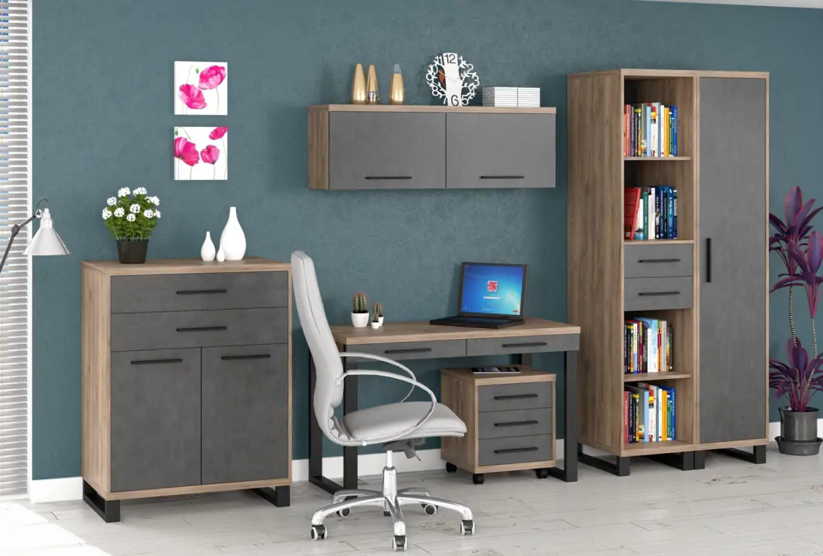 Pevné kovové nohy podtrhují loftový ráz nábytku.