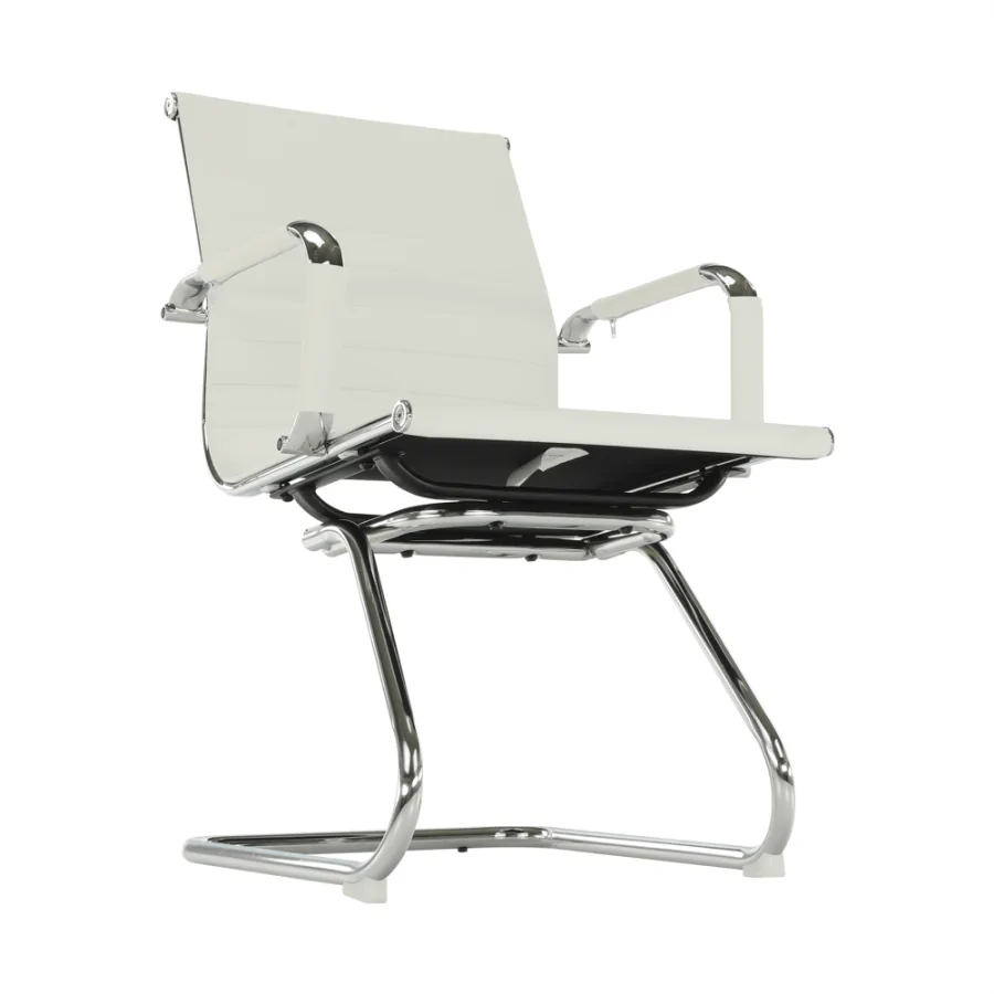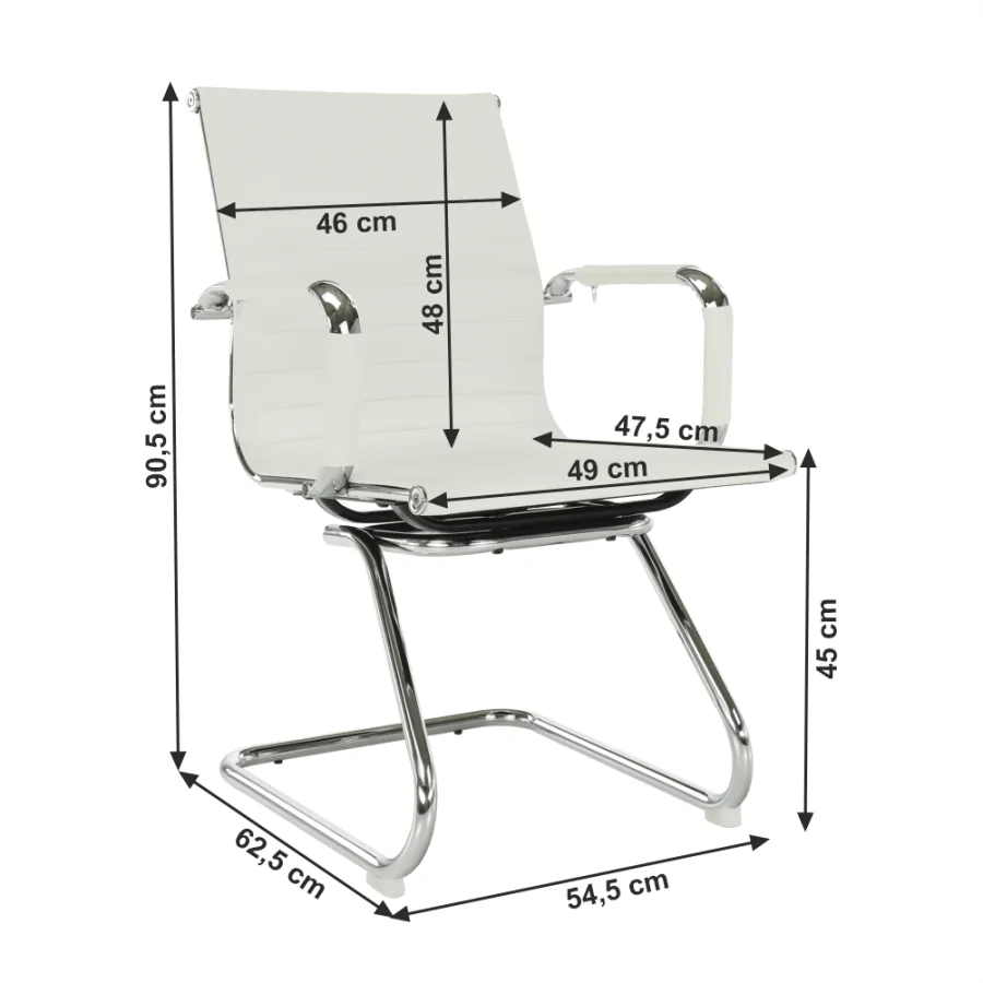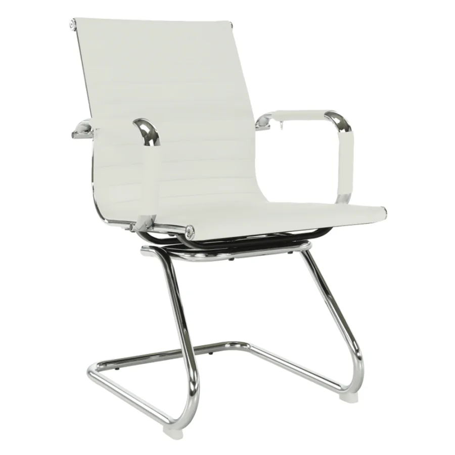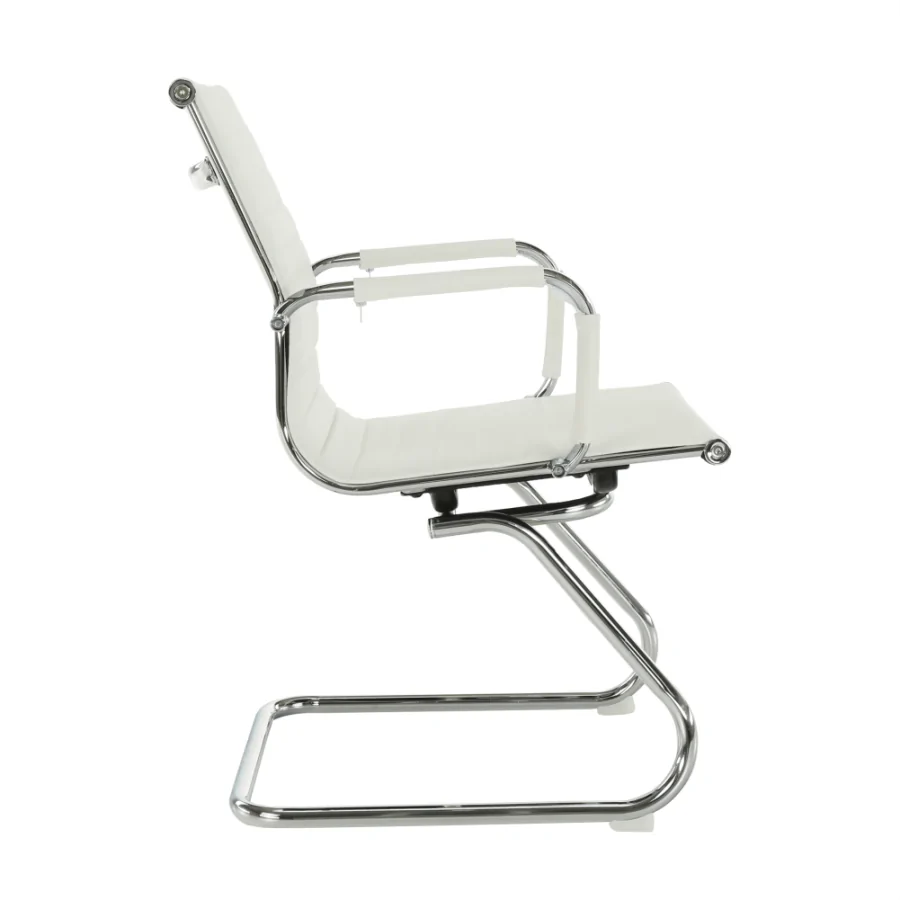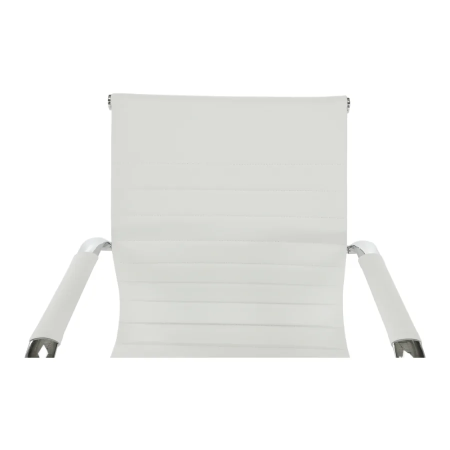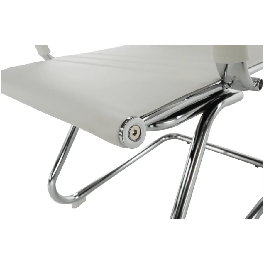 Moderní a stylově tvarovaná konferenční židle AZURE 2 NEW TYP 2. Je potažena ekokůží v bílé barvě. Konstrukce je chromová. Ergonomicky tvarovaný opěrák a čalouněné područky...