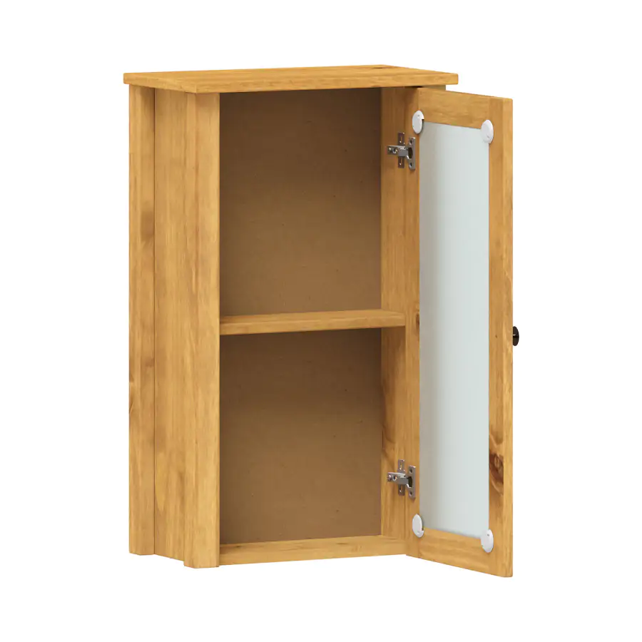 Závěsná skříňka PORTO s prosklenými dvířky v rustikálním stylu, zaplní prázdné místo na zdi koupelny. Disponuje 2 prostornými poličkami k uschování všech nezbytností, které jsou součástí ranní a večerní rutiny.