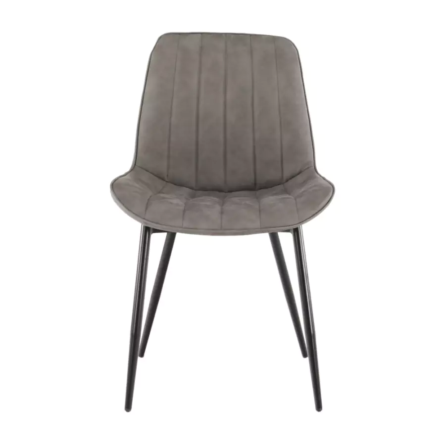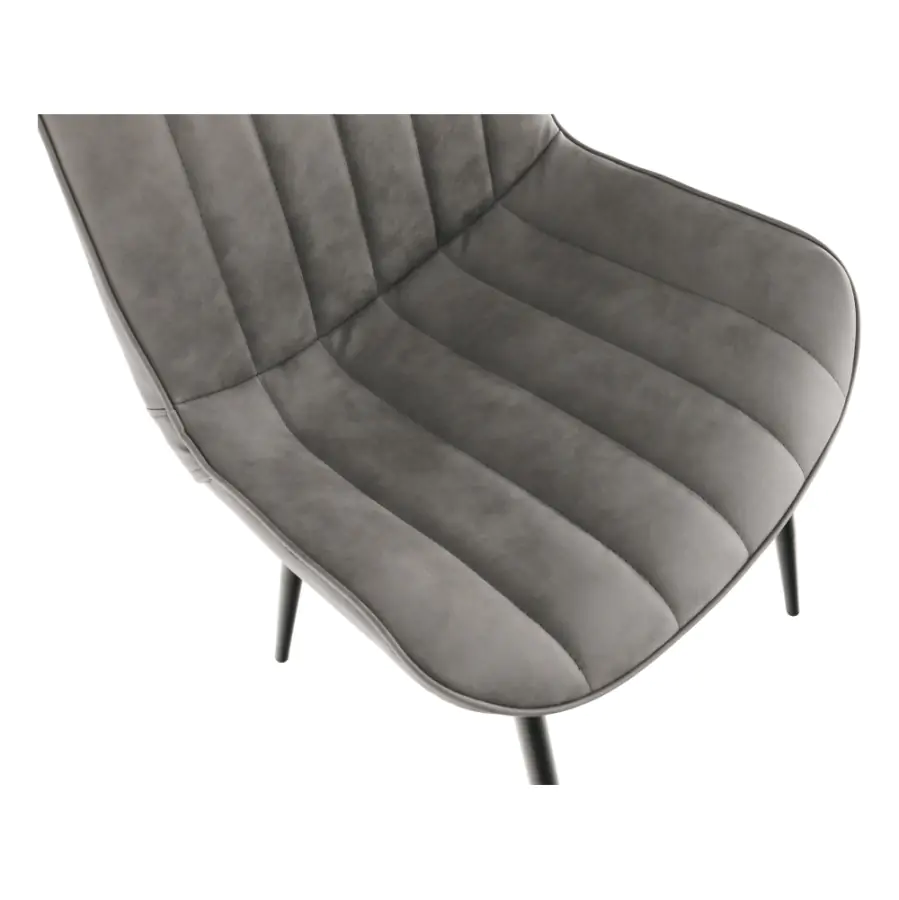 Vychutnejte si snídani nebo oběd s rodinou v naprostém pohodlí. Jídelní židle HAZAL je představitelkou luxusu a komfortního sezení. Dekorativní šití dodává židli pocit lehkosti a modernosti. Vyrobená je z kovu v černé barvě a čalouněná je kvalitní ekokůží v provedení světle šedá.