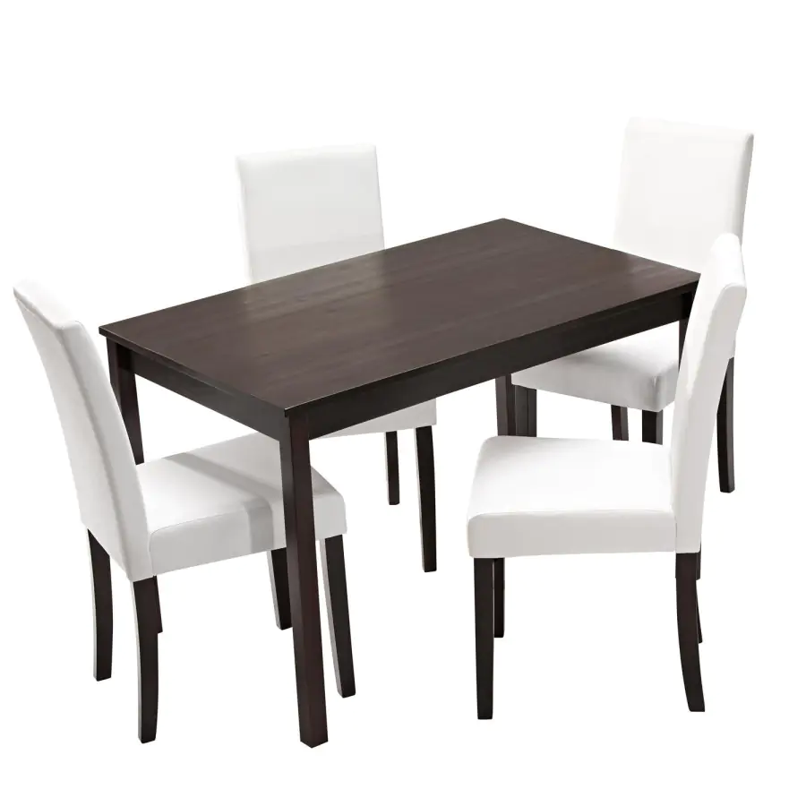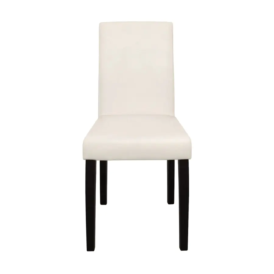 Stylová jídelní židle se díky svému nadčasovému vzhledu hodí do každé kuchyně. Kostra židle je vyrobena z lakovaného masivu v tmavě hnědém provedení, sedák a opěrák je čalouněný bílým potahem v imitaci kůže.