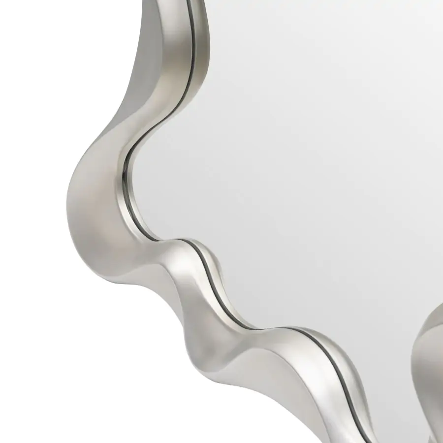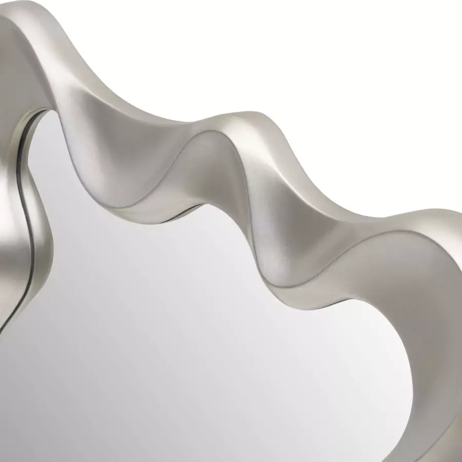 Vlnitý rám s jemně zaoblenými liniemi dodává zrcadlu dekorativní charakter a stává se výrazným prvkem interiéru.