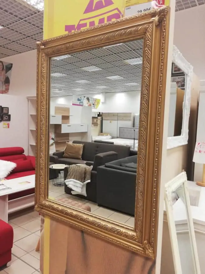 Elegantní zrcadlo MALKIA TYP 15. Dřevěný rám v luxusní zlaté barvě vynikne v klasickém i moderním interiéru. Vhodné do předsíně i ložnice. Vintage provedení ...