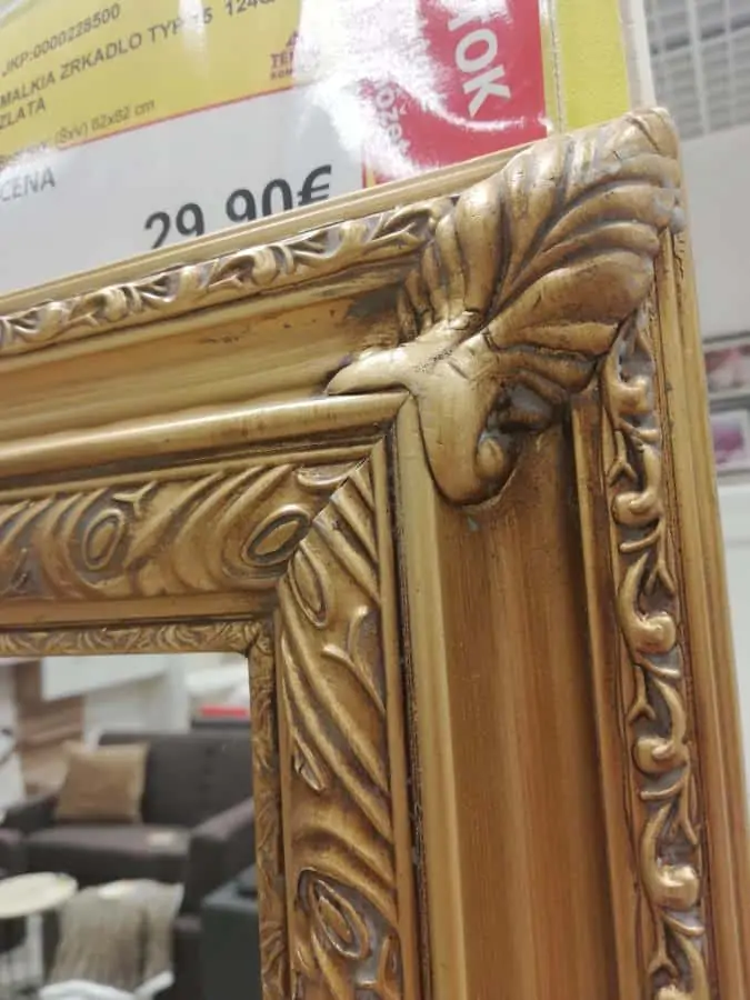 Dřevěný rám v luxusní zlaté barvě vynikne v klasickém i moderním interiéru.