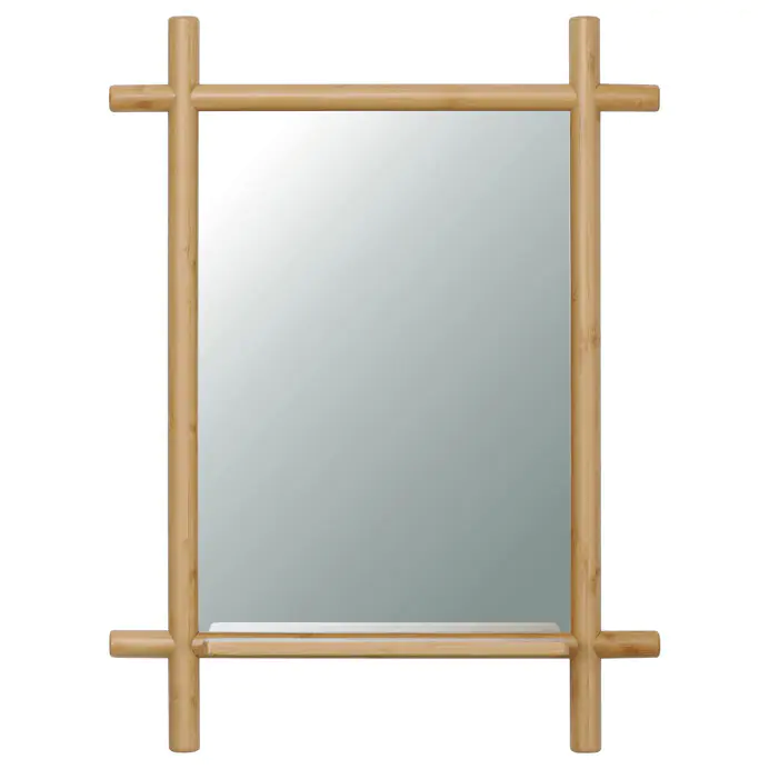 Nástěnné zrcadlo AZR-B027 NAT o rozměrech 55x74 cm je vyrobeno z masivního bambusu v přírodním odstínu, který dodává prostoru příjemnou a teplou atmosféru. Zrcadlová plocha je z kvalitního skla s čistým odrazem, ideální pro každodenní použití.
