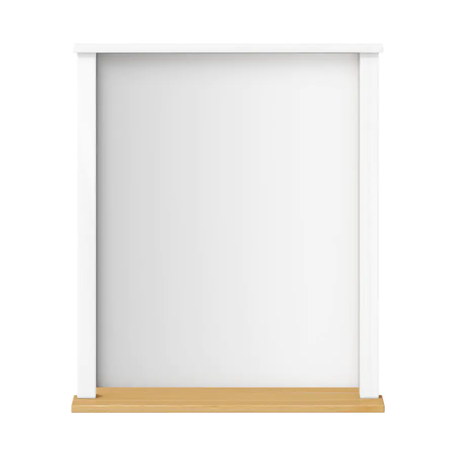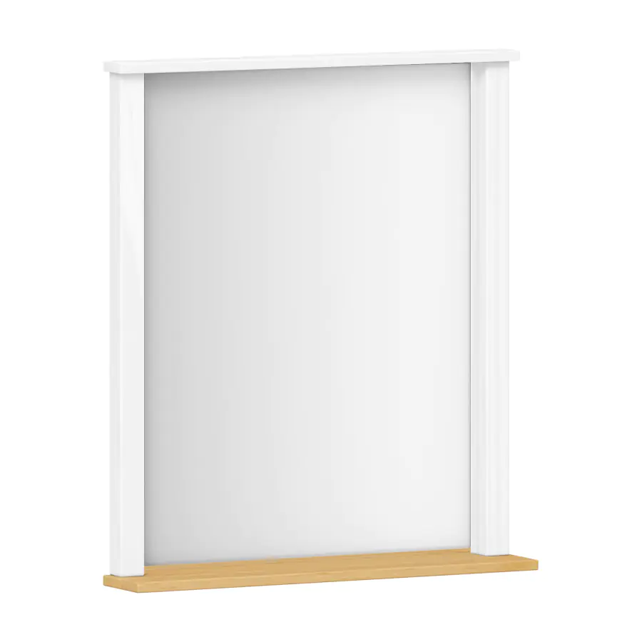 Zrcadlo PORTO ve dřevěném rámu se stane nedílnou součástí koupelnové rutiny! Spodní část rámu je prodloužena a můžete ji využít k odložení menších nezbytností, jako je např. kosmetika, či potřeby vhodné k zubní hygieně.