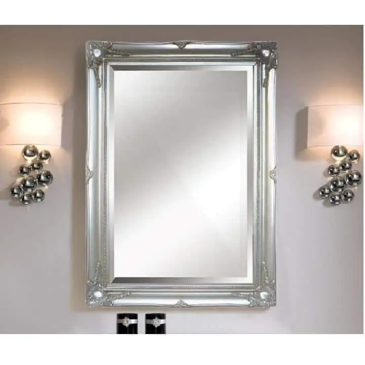 Toto zrcadlo bude nejen pěkným, ale zejména praktickým doplňkem v domácnosti. Doplňkem, který oživí stěny a rozjasní celou místnost. Zrcadlo má obdélníkový tvar a dominantní dřevěný rám stříbrné barvy.